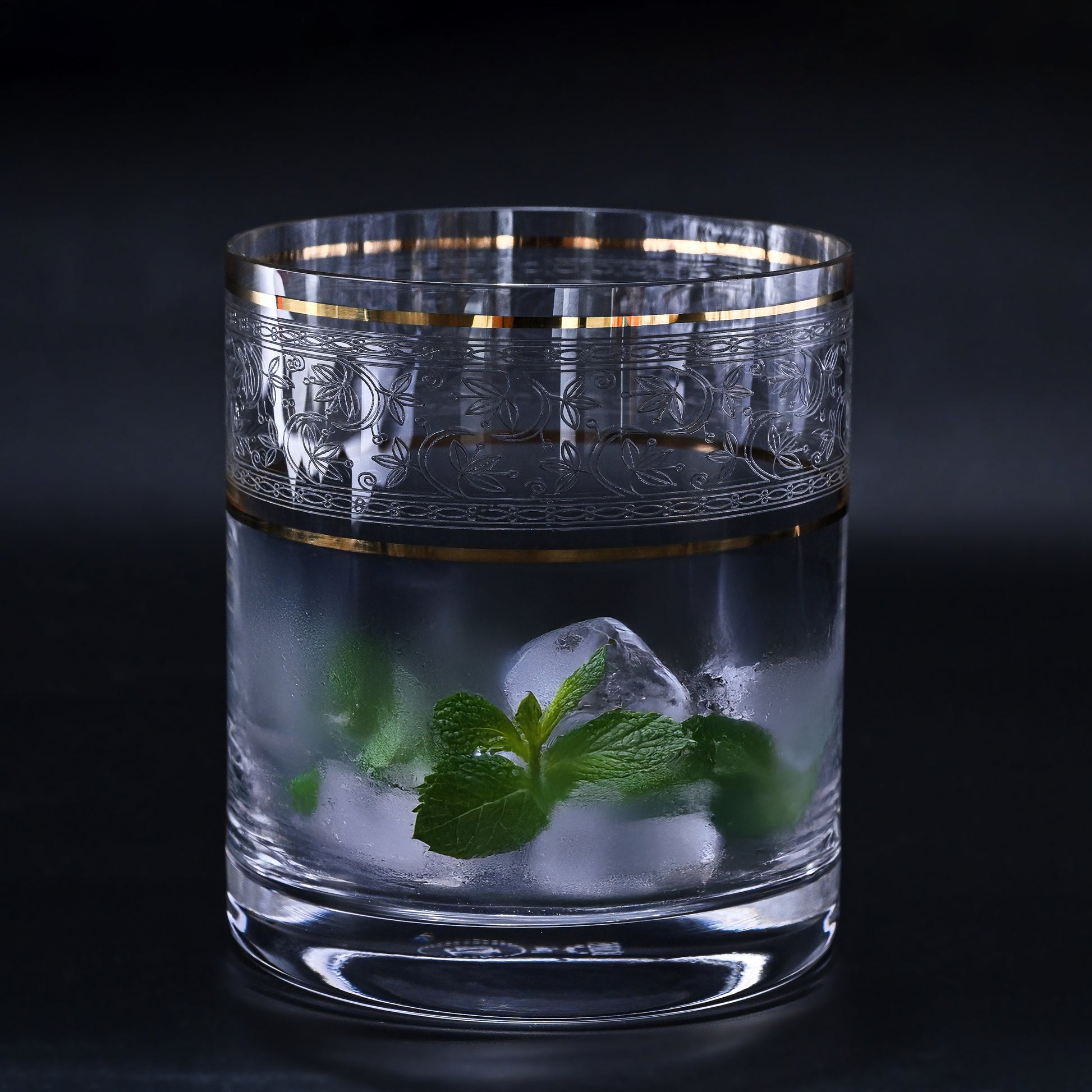 0028 4-Piece Transparent Panto & Gold Rim Whisky Tumbler Set