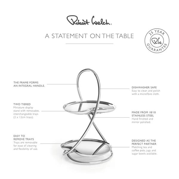 A 2 tiered canapé stand from the sculptured Drift range. Made from 18/10 stainless steel with a mirror-polished finish and classically proportioned making it elegant and effortless to use.
