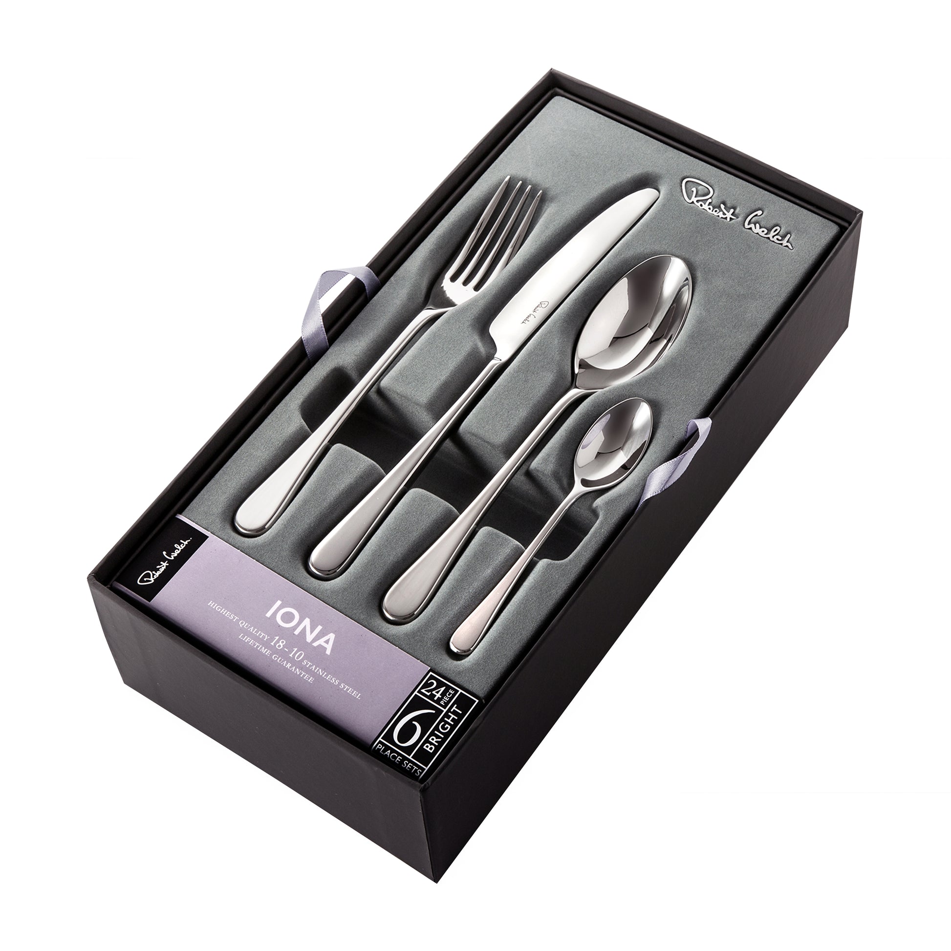 Iona Bright cutlery has a slim and elegant profile providing surprising balance and comfort when in use. The range is named after a small island on the western coast of Scotland, the Isle of Iona. The pattern is a distinctive design with a clean architectural feel.