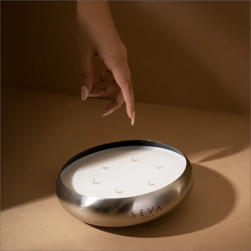 This beautifully handcrafted candle in a metal container is our take on a modern urli. Immerse yourself in the aromatic embrace of premium fragrances, as it infuses the air with a sense of tranquility and serenity.