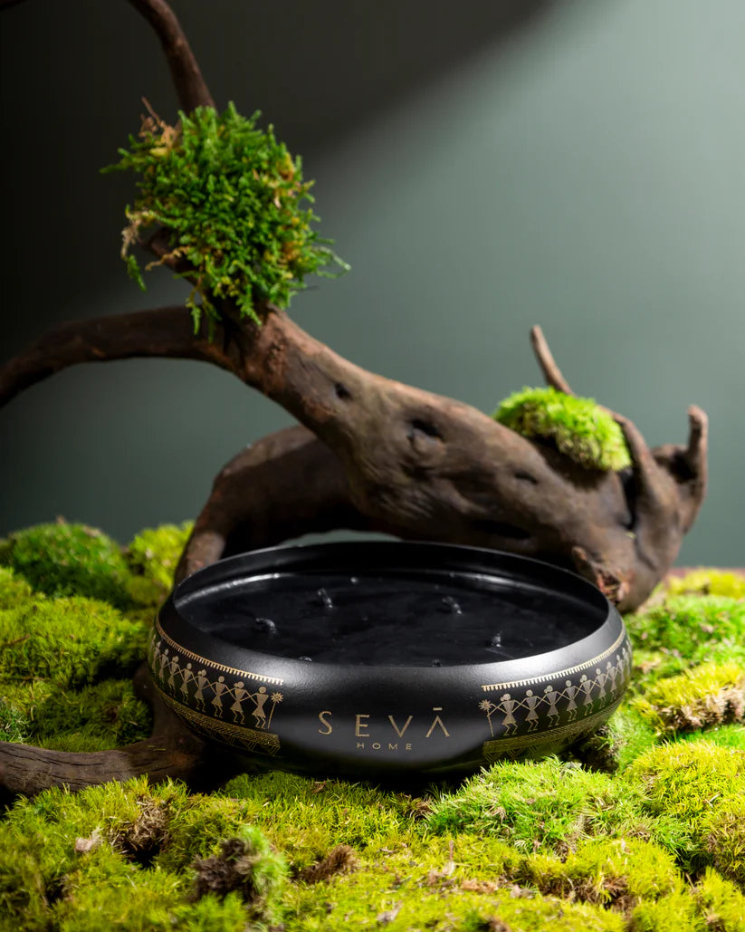 Capture the vibrant energy of the Tarpa Dance with SEVA’s modern Urli. Inspired by the Warli tribe, this piece celebrates unity and joy, symbolized by the dancers’ circular formation. Its lively design brings the spirit of dance into your home, while the rich fragrance blend of sea, coconut, milky creamy, fruity, and rum adds a calming touch.