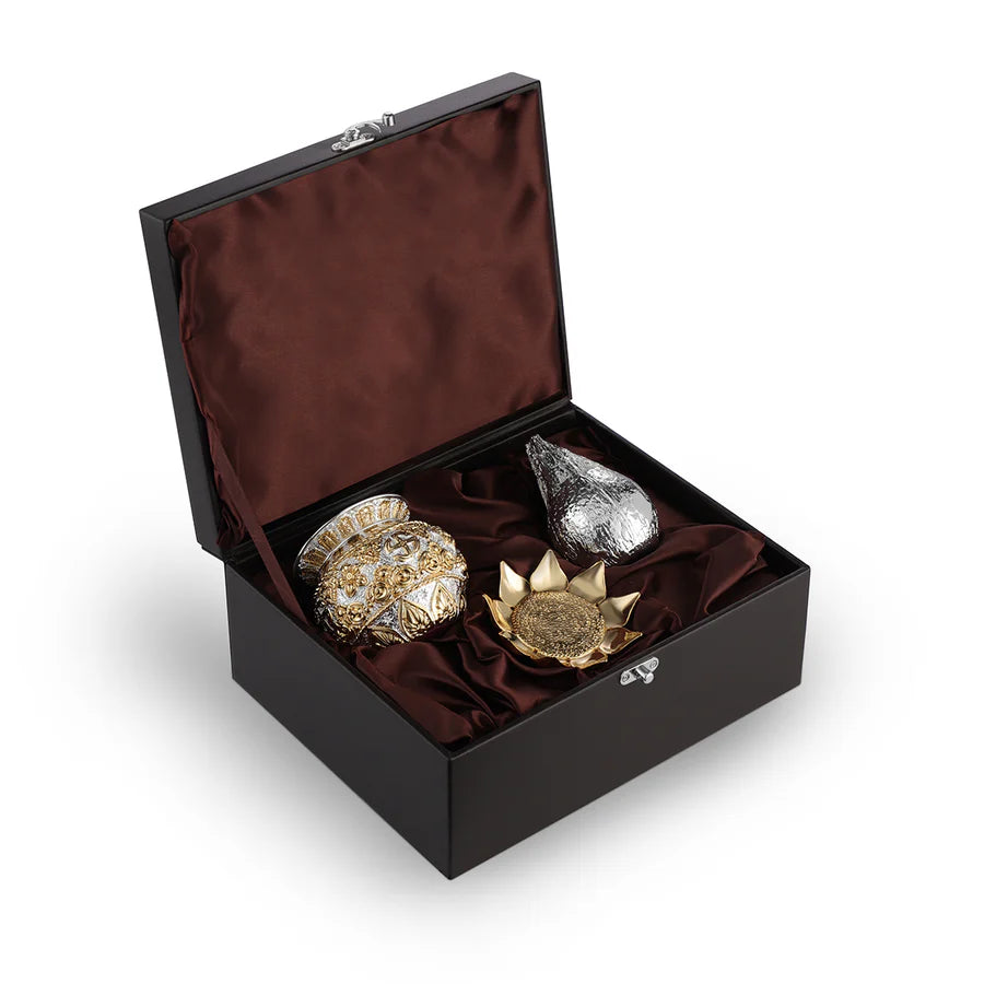 The magnificent Nariyal Kalash is the elixir of life and is viewed as a symbol of abundance, wisdom, and immortality.
