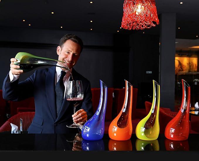 The Cornetto Confetti series was inspired by pop art. Bright and vibrant, this collection features decanters in lively colors. The long, thin shape of the Cornetto makes it perfect for both decanting young wines and removing sediment from older wines. The slim design of this decanter means there is a smaller surface area exposed, so fragile older wines are not overexposed to oxygen.